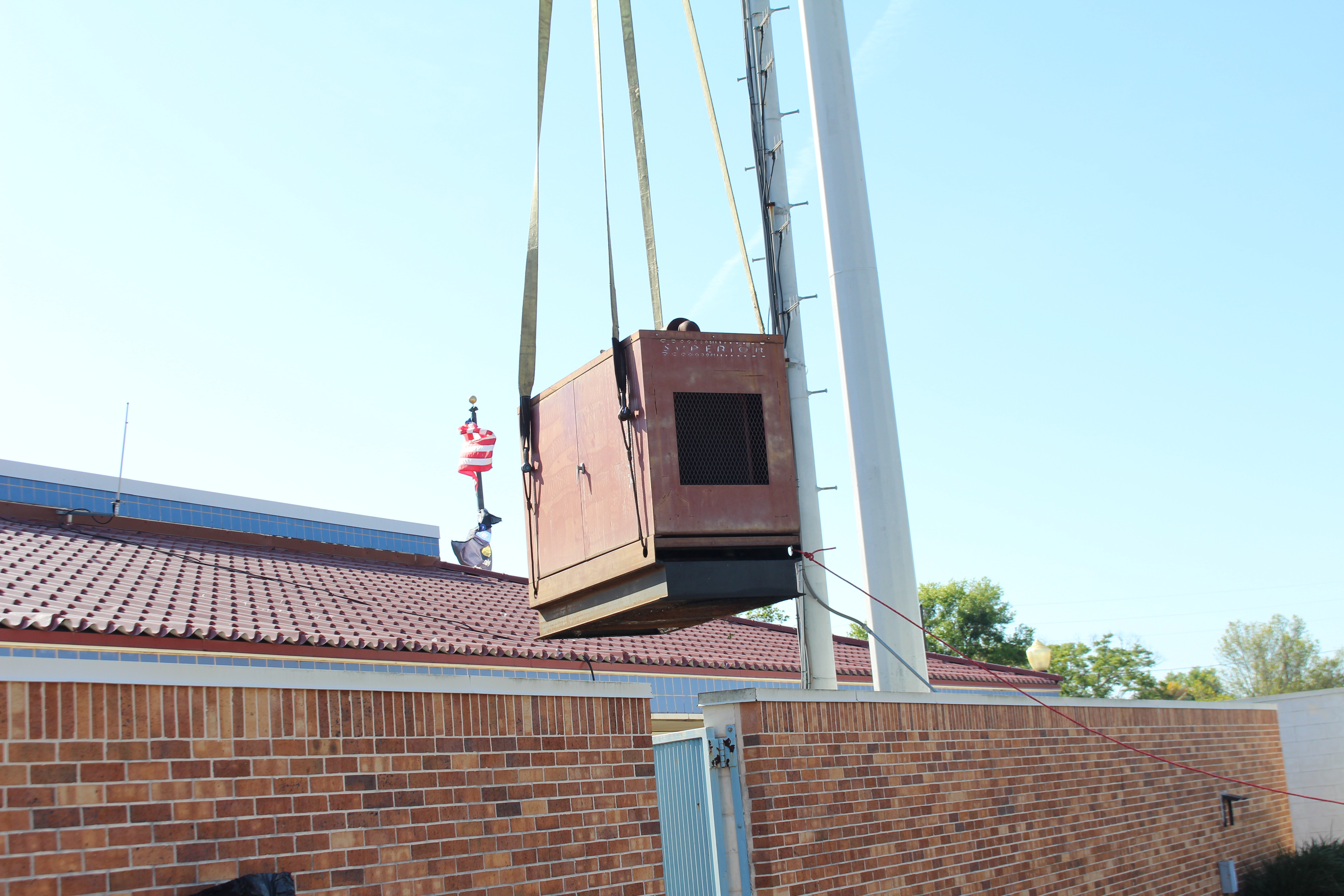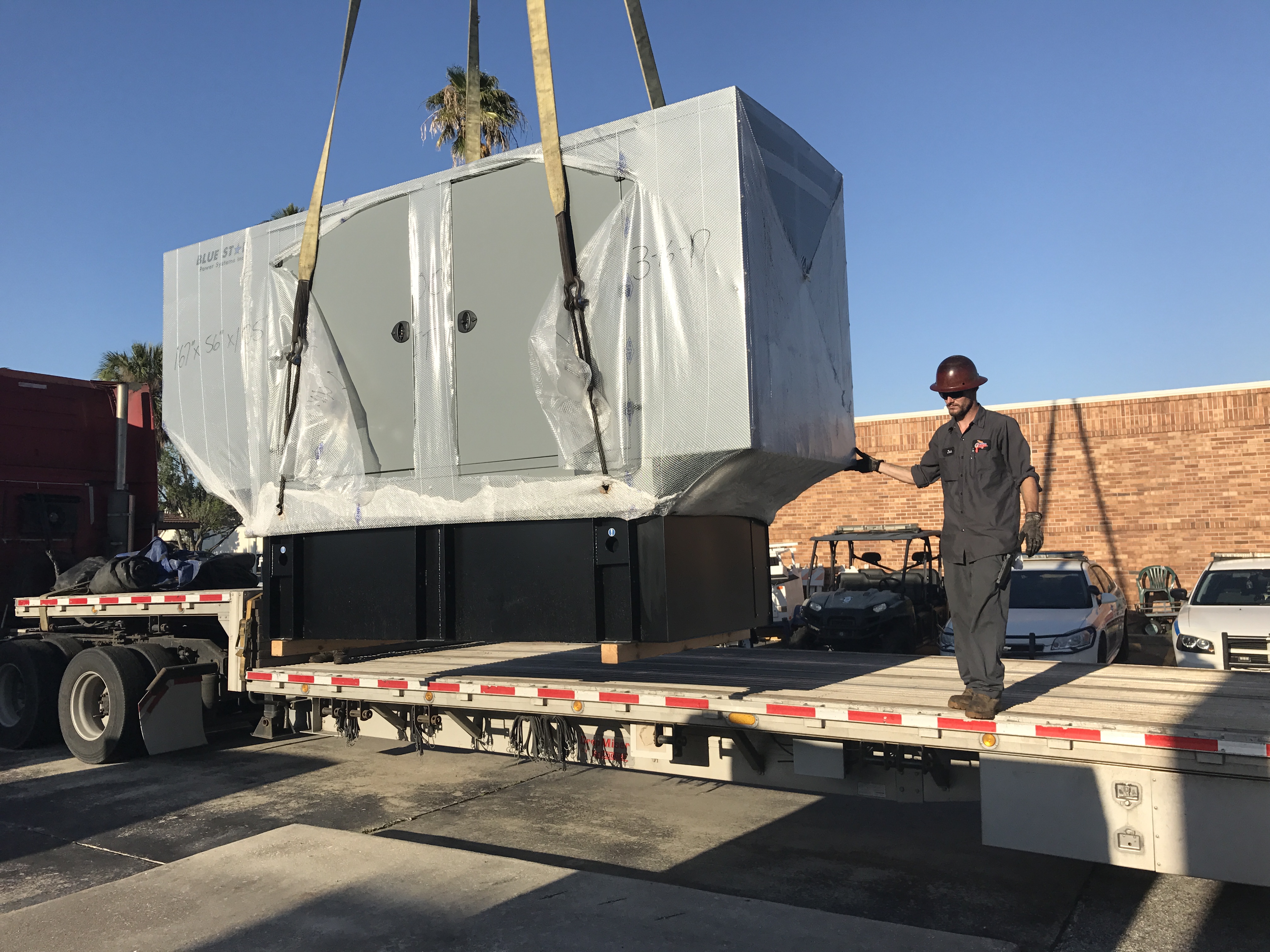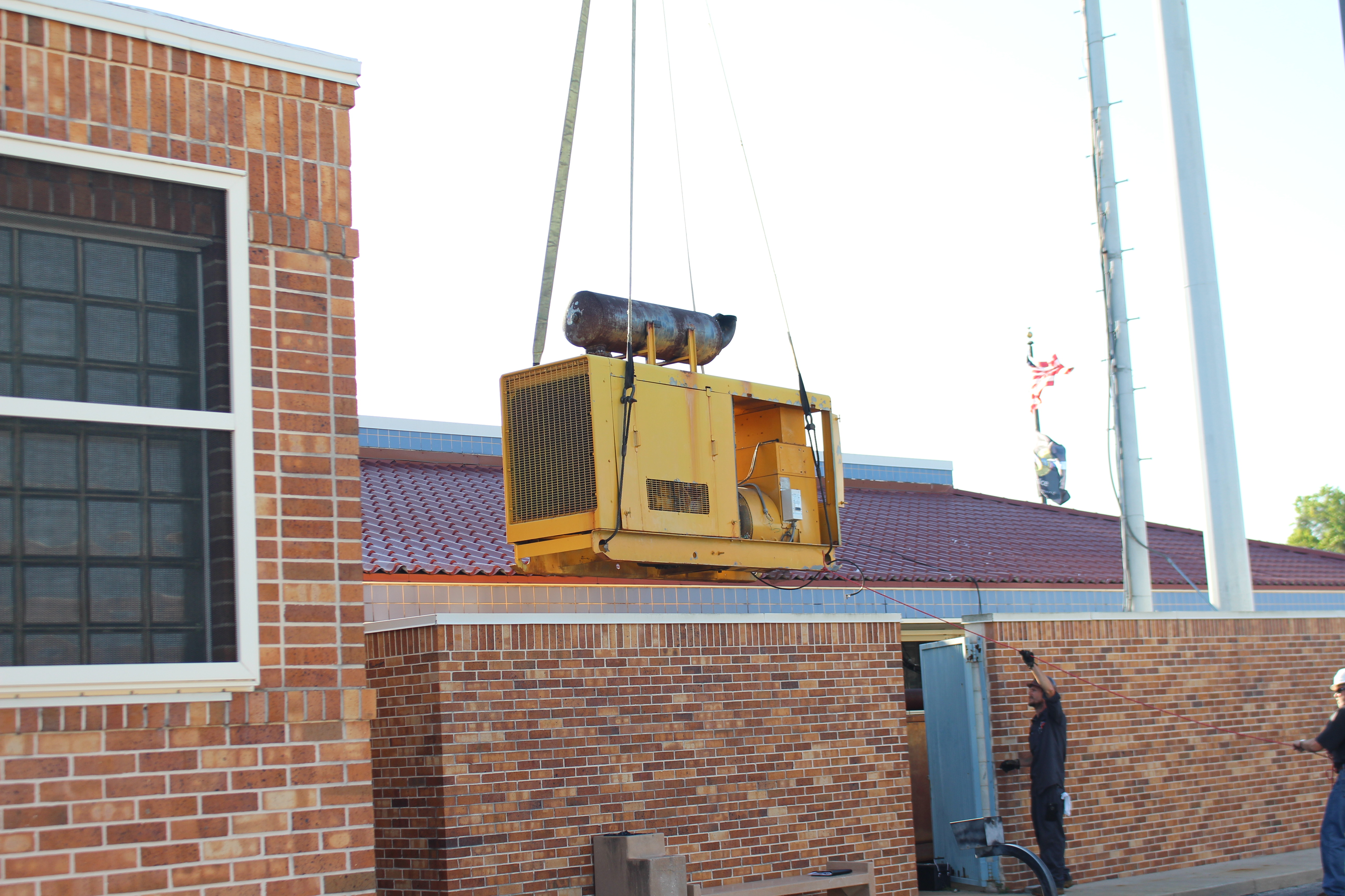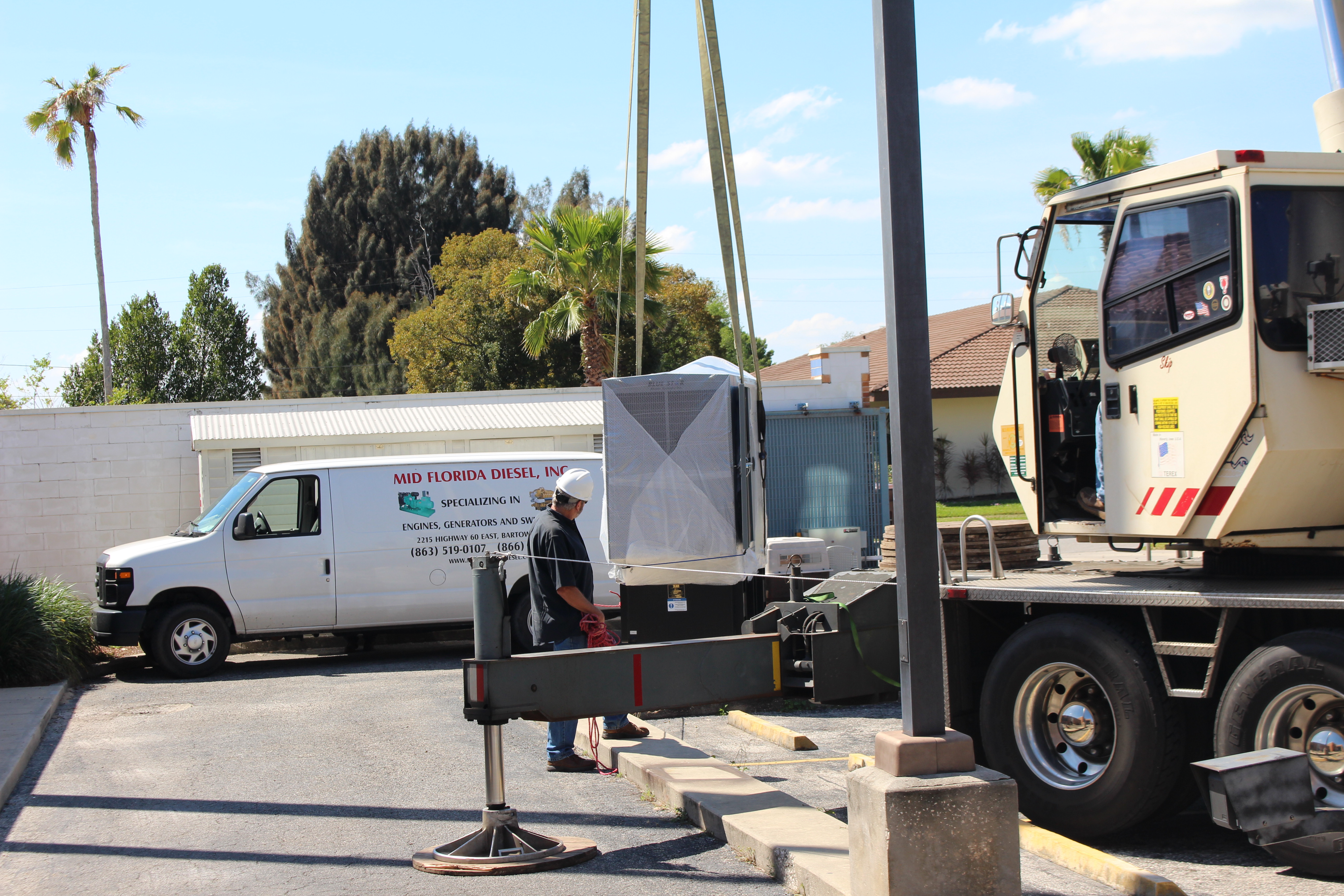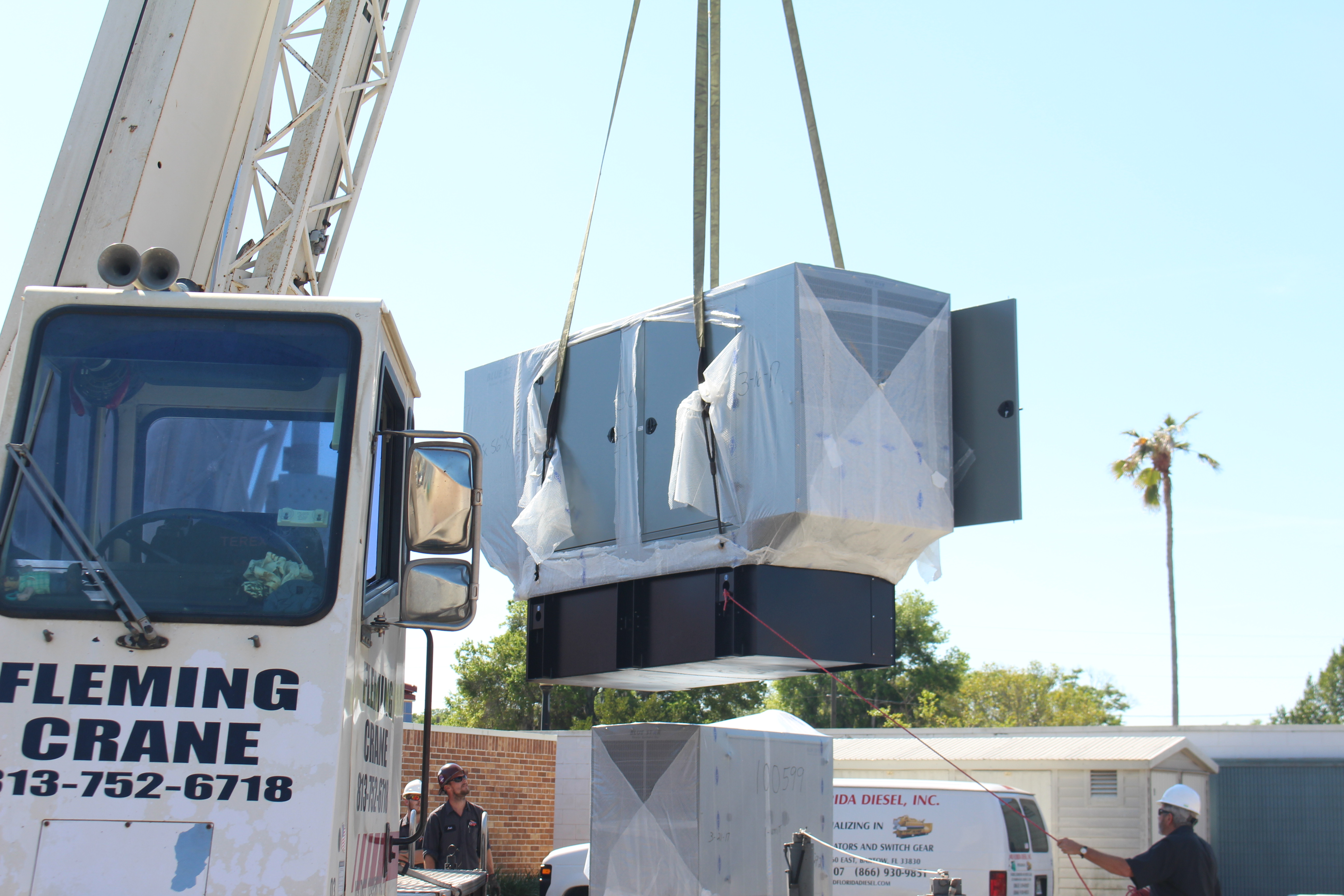 Mid Florida Diesel recently sold 2 Blue Star Power Systems Generators to the City of Lake Wales Police Department. The pictures show Mid Florida Diesel removing the existing 200Kw Allis Chambers Generator and a 40kw Federal Electric Generator from quite a tight spot. Mid Florida Diesel installed a new 50Kw as well as a 200Kw Blue Star Power System Generators. The project went very well and the customers are very happy to have two new dependable generators to support their mission. Great job guys!